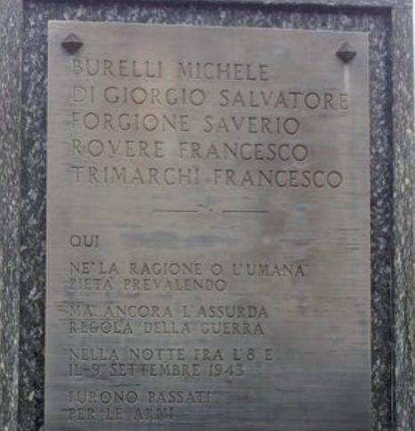 Michele Burelli, Francesco Trimarchi, Saverio Forgione, Salvatore Di Giorgio e Francesco Rovere: erano tutti poco più che trentenni, originari di paesi della Piana e dell’entroterra reggino. Appartenevano al 16° Battaglione del 141° Reggimento Costiero di stanza ad Acquappesa, e l’8 settembre, giorno dell’annuncio dell’armistizio, avevano già le mani legate e una sentenza di morte pronunciata.