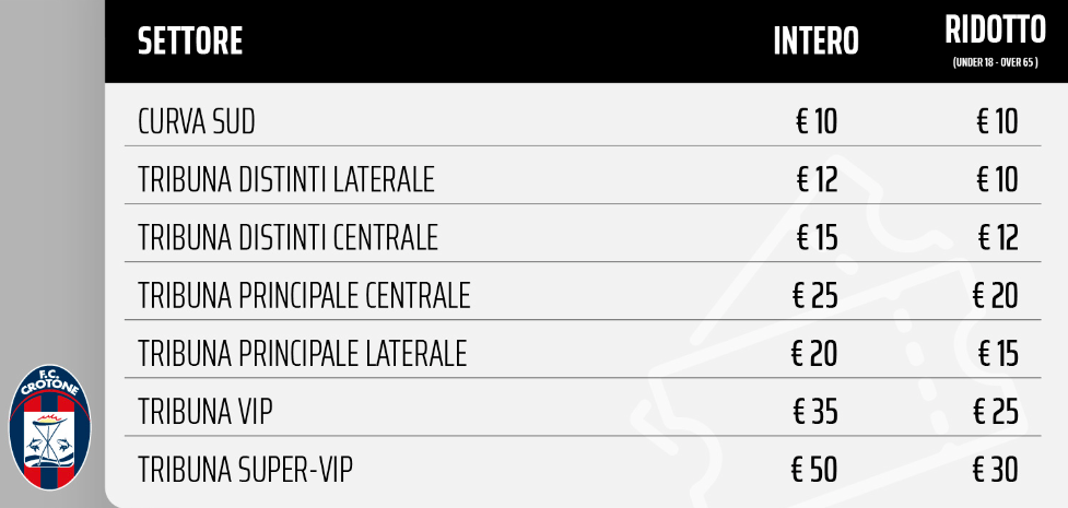 Crotone-Siracusa: al via la vendita dei biglietti per la sfida allo “Scida” – GRAFICO