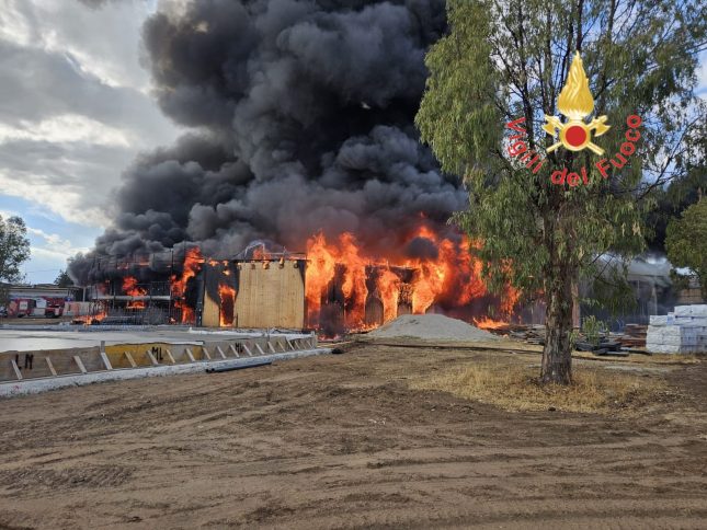 In azione i vigili del fuoco. Vittimberga: «Cinque anni di sogni, di progetti e di lavoro si stanno incenerendo sotto gli occhi impotenti di tutta la cittadinanza»