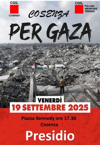 CATANZARO In seguito alle tragiche notizie che arrivano da Gaza rispetto all’invasione dei territori palestinesi e i continui attacchi israeliani in Cisgiordania, la Cgil Calabria condividendo l’urgenza di una risposta radicata e diffusa del mondo del lavoro, indice per domani 19 settembre due ore di sciopero e/o assemblee nei luoghi di lavoro e sarà presente sui territori con presidi e mobilitazioni». È quanto rende noto il sindacato.