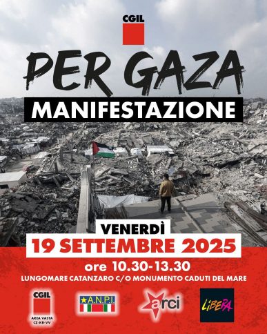 Con riferimento al sit-in in programma domani, in particolare a quello a Catanzaro Lido, ecco il commento di Enzo Scalese, segretario generale della Cgil Calabria: “Si tratta di un momento pubblico di mobilitazione e testimonianza per chiedere l’immediata cessazione delle operazioni militari che continuano a colpire indiscriminatamente la popolazione civile, l’apertura urgente di corridoi umanitari e il pieno rispetto del diritto internazionale. Di fronte a ciò che sta accadendo a Gaza – sostiene Scalese – non possiamo restare in silenzio. Venerdì 19 saremo in piazza perché ogni vita umana conta, perché la distruzione di quartieri interi, la morte di civili, bambini, medici, operatori sanitari e la devastazione delle infrastrutture sono ormai un dramma che travalica i confini – sottolinea ancora Scalese -. È necessario che l’Italia e le istituzioni internazionali si schierino in modo chiaro: basta con la logica della guerra, basta con la logica della forza. Serve una pace sostenibile fondata sul rispetto dei diritti umani, del diritto internazionale, una pace che non sia subordinata a interessi strategici o economici. Medicina, cibo, casa, libertà: non sono beni negoziabili. Invitiamo lavoratori e lavoratrici, pensionati, studenti, associazioni, istituzioni e cittadini a partecipare e sostenere la manifestazione. Perché la pace non è un’idea astratta, ma un dovere civile e morale”, conclude il segretario generale della Cgil Area Vasta.