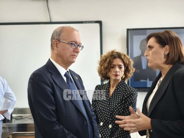 Dopo il consueto inno di Mameli e qualche selfie con strappo alla regola dell’ormai celebre divieto di utilizzo dei cellulari a scuola, il ministro ha percorso un “tour” interno alla scoperta dei laboratori e delle attività dei due istituti. «La scuola calabrese sta facendo passi in avanti straordinari. Lo ha testimoniato anche l’indagine Invalsi con il funzionamento di Agenda Sud. Un esempio – aggiunge – di come con le buone pratiche si possa veramente far crescere un territorio». Valditara rivendica ancora una volta «i più grandi investimenti mai fatti per l’edilizia scolastica, 820 milioni di euro, tra cui fondi ministeriali e fondi Pnrr» e anche «il piano estate. Proprio qua sono state sviluppate delle innovazioni particolarmente interessanti. Questi istituti contribuiscono in modo decisivo alla crescita economica dei territori e a dare una prospettiva professionale di inserimento nel mondo lavorativo a tanti nostri giovani». Valditara, accolto nella visita del secondo istituto da due studentesse con le vesti dell’Italia e dell’Europa, esalta l’Istruzione tecnico professionale: «Lo ripeterò fino alla fine del mio mandato, è un’istruzione di serie A e noi dobbiamo trasmettere con forza questo messaggio alle famiglie perché investano nel futuro del proprio figli iscrivendoli a questi percorsi di qualità che danno prospettive occupazionali importanti. Bisogna testimoniare questa straordinaria realtà».
