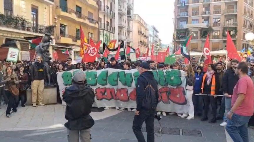 Manifestazioni e cortei sono in corso anche a Reggio Calabria, Catanzaro e Lamezia Terme, ma non nelle vicinanze di luoghi “sensibili” come stazioni o aeroporti. In tutte le iniziative bandiere e slogan proPal per «far sentire forte la voce a sostegno della pace, della solidarietà internazionale e dei diritti di chi soffre e contro il genocidio che si sta perpetrando nei confronti del popolo palestinese». Studenti in piazza anche a Soverato, dove un gruppo di studenti ha sfilato sul lungomare per poi radunarsi in un sit-in. “Ignorare non è una scelta, non possiamo non fare qualcosa, hanno illegalmente bloccato una flotta hanno deciso di togliere il sorriso ai bambini dobbiamo essere noi a dare voce a tutto questo» il loro pensiero. Intervenendo, un professore ha detto di sentire «un po’ di vergogna. Siamo troppo pochi».