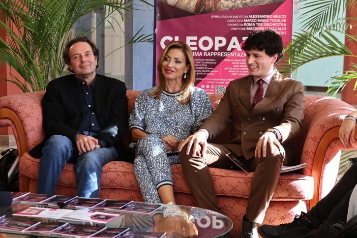 Un’opera che unisce l’antica storia egizia all’elettronica, l’innovazione scientifica alla grande tradizione operistica. È questo il biglietto da visita di Cleopatra, la nuova opera lirica di Alessandro Meacci, presentata questo pomeriggio al Foyer del Teatro Politeama di Catanzaro. La conferenza stampa ha riunito il team artistico: Antonietta Santacroce, Direttore Artistico del Festival d’Autunno, il compositore Alessandro Meacci, la regista Erica Salbego, il direttore d’orchestra Massimiliano Caldi, il soprano Maria Carfora e la scenografa digitale Annalisa Scarpa.