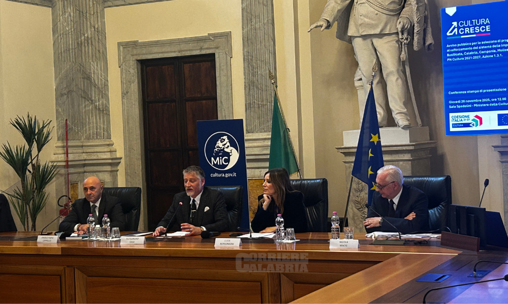 ROMA Oltre 151 milioni di euro destinati alle regioni del Mezzogiorno con l’avviso pubblico “Cultura Cresce”, promosso dalla Direzione Generale Creatività Contemporanea del ministero della Cultura che permetterà la selezione di progetti imprenditoriali in grado di contribuire al rafforzamento del sistema delle imprese culturali e creative nell’ambito del Programma Nazionale Cultura 2021-2027 Azione 1.3.1. Destinatarie del bando presentato questa mattina nella Sala Spadolini del Mic, Basilicata, Calabria, Campania, Molise, Puglia, Sardegna e Sicilia. L’obiettivo specifico è promuovere la crescita sostenibile e la competitività delle imprese.