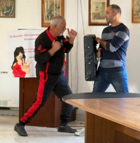 Nel corso del convegno il maestro di arti marziali Domenico Restuccia ha illustrato alcune tecniche di autodifesa