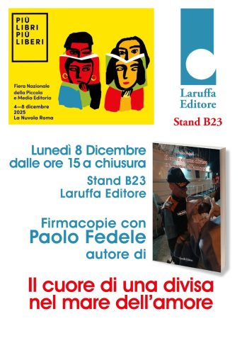 Una storia di coraggio, dedizione e passione approda alla Fiera Nazionale della Piccola e Media Editoria di Roma. Il cuore di una divisa nel mare dell’amore, il nuovo libro di Paolo Fedele, ufficiale del Corpo delle Capitanerie di Porto – Guardia Costiera e oggi in servizio presso il Ministero dell’Ambiente nella capitale, verrà presentato al pubblico durante la prossima edizione di Più Libri Più Liberi, in programma dal 4 all’8 dicembre al centro congressi La Nuvola, nel quartiere Eur. Sin dalle prime pagine, l’opera si rivela per ciò che è: un viaggio. Una rotta che attraversa anime e mari, memorie e orizzonti.