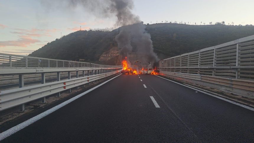 Chiodi sull’asfalto e auto bruciate, assalto a un portavalori in autostrada nei pressi di Bagnara – FOTO E VIDEO