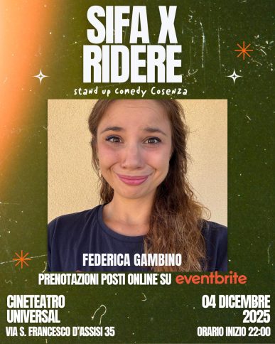 Ogni serata di “Sifa x ridere” vedrà protagoniste comiche e comici provenienti da tutta Italia, offrendo al pubblico cosentino uno spazio autentico di intrattenimento e riflessione, nel segno della leggerezza e della socialità.