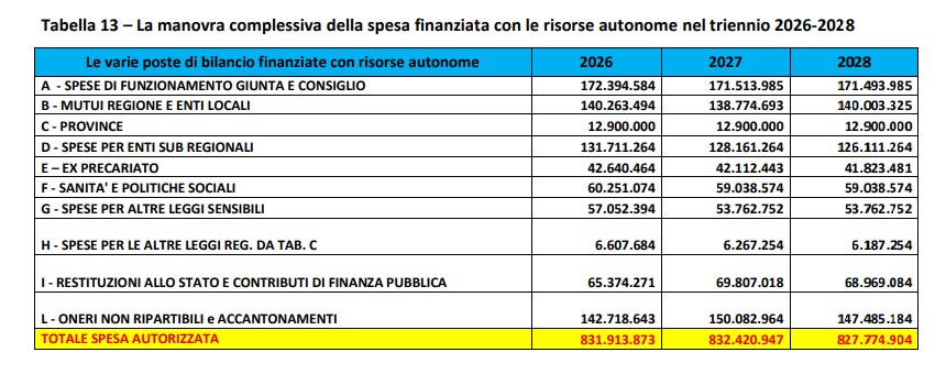 Regione, al via la sessione di bilancio. Tutti i numeri della manovra 2026-2028