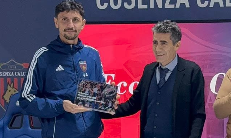 A premiare il difensore oggi è stato il direttore generale del Cosenza calcio, Salvatore Gualtieri.