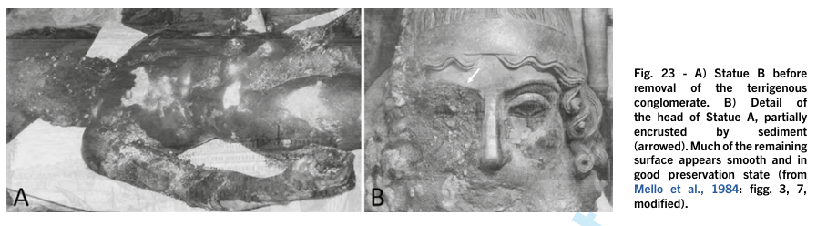 Dunque, secondo quanto emerge dallo studio pubblicato sull’Italian Journal of Geosciences, in sostanza per la “Statua A” la questione resta aperta: possibile Sibari da un’altra cava o Argos/Peloponneso. Qui lo studio è ancora cauto e tiene in piedi la tradizione “argiva” per almeno parte dei modelli. Sul fronte taphonomico, invece, lo studio affronta un altro dogma: i Bronzi non sono rimasti per millenni là dove sono stati trovati. La stratificazione delle patine, l’azione biologica marina, la composizione dei carbonati e l’analisi granulometrica del fondale indicano «una lunga deposizione primaria in fondali molto più profondi e in contesti idrodinamici diversi». Tradotto, Riace non è il punto originario di affondamento.