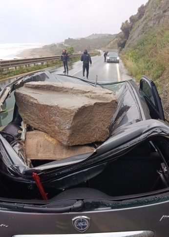 Maltempo, masso cade su un’auto sulla Statale 106 a Bianco: un ferito – FOTO