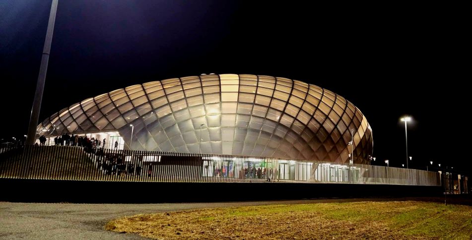 «Oggi possiamo affermare senza timore di essere smentiti che la realizzazione di questo progetto è una sfida vinta, non solo dall’impresa Ferraro, ma da un’intera comunità, dalla città della Lamezia Terme. Consegniamo un impianto sportivo moderno, tecnologico, all’avanguardia, sostenibile, ideato, progettato e realizzato per essere vissuto», dichiara ai nostri microfoni l’architetto Pietro Grandinetti della Ferraro Spa. Che poi si sofferma sulle caratteristiche dell’impianto. «La copertura è un’ampia volta in acciaio reticolare rivestita da una tripla membrana. Sono stati utilizzati 900 cuscini pressurizzati tenuti insieme da un sistema non energivoro. Ogni elemento che compone la struttura ha la sua specificità, sia esso architettonico, strutturale o impiantistico».