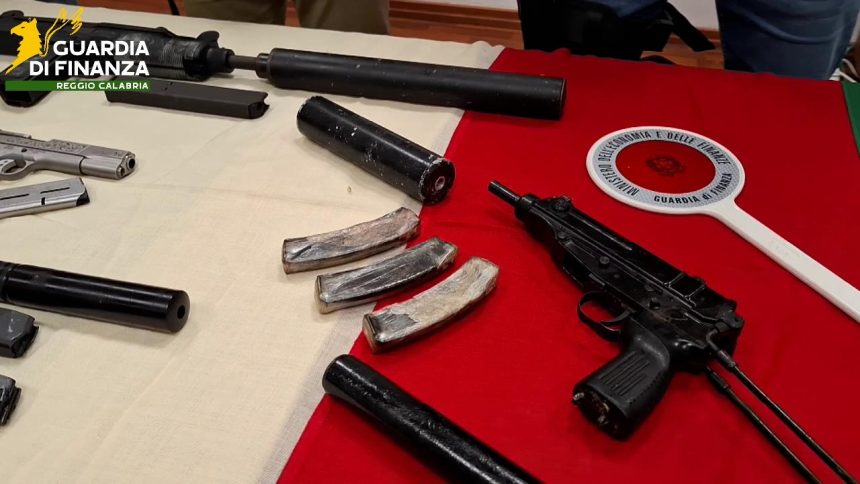 REGGIO CALABRIA Il Comando Provinciale Guardia di Finanza di Reggio Calabria ha scoperto, in un’area isolata e di difficile accesso della Piana di Gioia Tauro, un deposito di armi particolarmente fornito. Nel corso di un’attività di controllo economico del territorio, una pattuglia della Guardia di finanza in fase di perlustrazione ha notato l’anomala presenza di un fusto di plastica tumulato in un’area rurale, la cui parte superiore – a causa delle forti piogge che hanno interessato nei giorni scorsi la zona – affiorava stranamente dal terreno. La successiva verifica del suo contenuto ha consentito di rinvenire un vero e proprio arsenale che è stato sottoposto a sequestro: 9 pistole semi-automatiche, 4 pistole a tamburo e 3 pistole mitragliatrici, alcune delle quali dotate di silenziatori e con matricola abrasa.