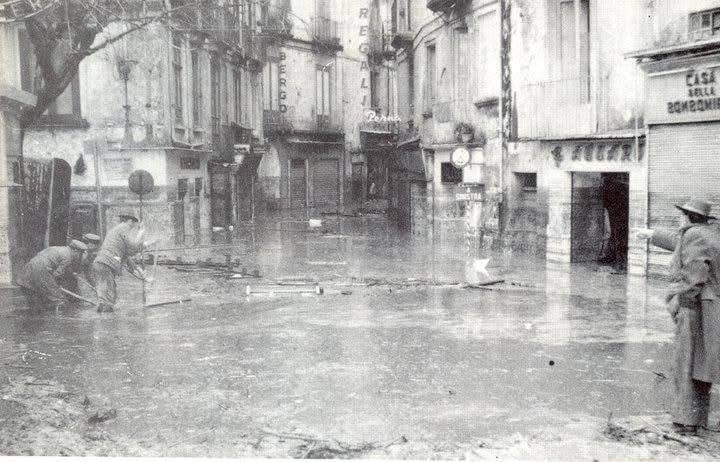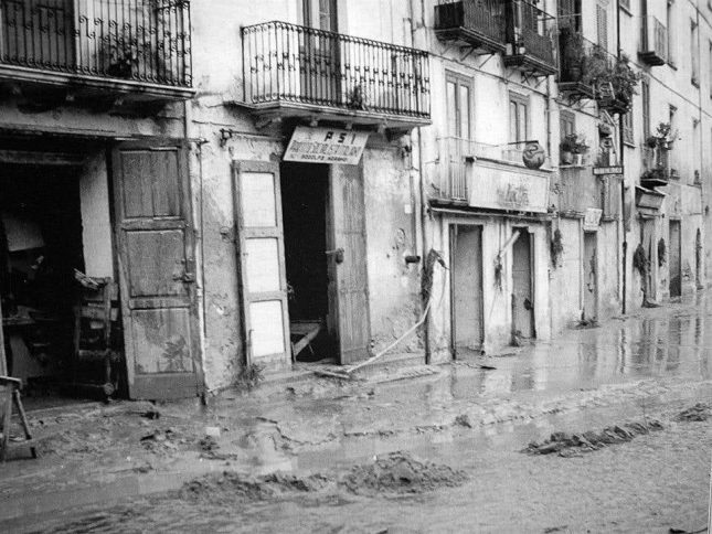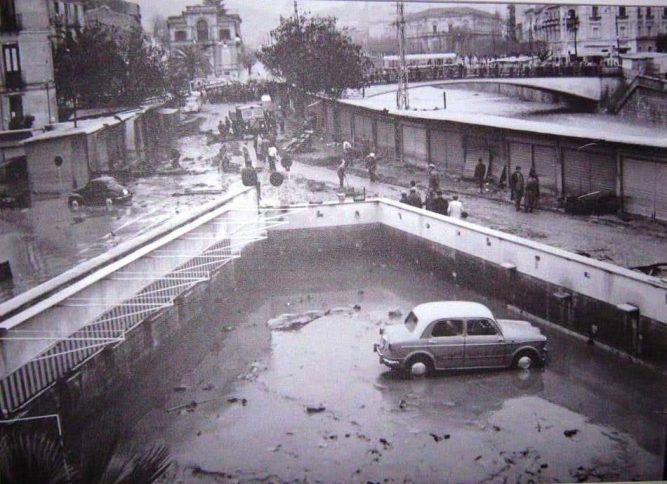 «Il livello delle acque – riporta il sito Mistery Hunters a corredo delle bellissime foto di Alfredo Salzano – superò, in alcuni punti, di oltre due metri quello delle strade. La portata di piena del 1959 fu stimata dal Genio Civile in 450 metri cubi al secondo e quella del Busento in 525. Dai giornali dell’epoca si apprende che il fiume danneggiò 14 bancarelle, 5 officine, 3 calzolai, 6 giornalai, 4 sarti, 60 fruttivendoli, 7 falegnami, 9 barbieri, un arrotino, 2 maniscalchi: quasi l’intera economia dei vicoli che sfamava oltre 500 famiglie».