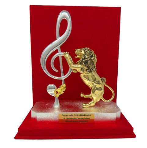 Tra i riconoscimenti più attesi spicca il Premio della Critica “Mia Martini”, istituito nel 1982 e assegnato dai giornalisti accreditati presso la Sala Stampa al brano ritenuto più meritevole. L’opera realizzata, è una scultura con bagno in oro e argento, raffigurante un leone poggiato su una chiave di violino. Alla base si evidenzia una composizione di fiori in argento, arricchita da pietre azzurre. Accanto a questo, firmano anche il Premio Sala Stampa “Lucio Dalla”, nato nel 2001 e attribuito dai giornalisti radio-televisivi e web accreditati al Festival. L’opera raffigura una chiave di violino al cui interno è stato inserito il classico berretto e occhiali utilizzati dall’artista bolognese. Entrambi i premi saranno conferiti nelle categorie “Big” e “Nuove Proposte”.