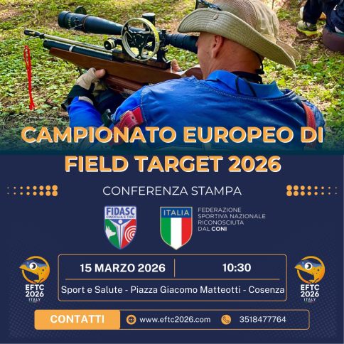 COSENZA La Calabria si prepara ad accogliere un evento di rilievo internazionale. Fidasc Calabria e Asd Field Target Calabria hanno convocato una conferenza stampa di presentazione del Campionato Europeo di Field Target EFTC 2026, che si svolgerà dal 7 al 12 luglio 2026 nel territorio di Fagnano Castello, in provincia di Cosenza.