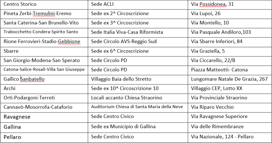REGGIO CALABRIA Il Comitato Organizzatore delle Primarie del Centrosinistra ha definito le sedi dove si svolgeranno le elezioni primarie del centrosinistra per la selezione del candidato sindaco di Reggio Calabria nel 2026. Elezioni che si terranno nella giornata unica del 15 marzo a partire dalle ore 9 e in continuità fino alle ore 20.