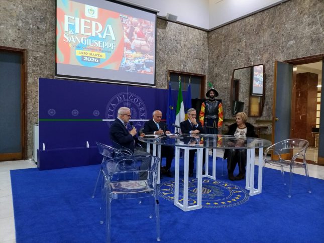 Lo spazio food con gli influencer di casa e no (il cosentino Porcopò e il titktoker napoletano Chianese) e la cartolina storica con annullo filatelico di Poste Italiane – rappresentate oggi da Maria Elena Cribari – con un San Giuseppe artigiano sono le novità di questa edizione: una conferma invece la cena solidale con le associazioni della città. Branda proietta la sua visione già sulla prossima: il mantra è “trasformare la fiera da evento ad attrazione”, intanto già quest’anno partirà la sperimentazione resa possibile da tour operator e guide turistiche che sabato 14 porteranno dei gruppi in visita nel centro storico, un modo per richiamare gli antichi fasti non più possibili per questioni di sicurezza (“è questa l’uscita più gravosa, sono misure stringenti e onerosissime” specifica Branda) e “fare sistema creando economia e puntando su accoglienza e ristorazione”. Per il centro storico, Branda annuncia anche iniziative dedicate all’artigianato tradizionale.
