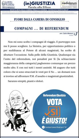 “La vignetta diffusa dalla Camera penale di Cosenza in piena campagna referendaria rappresenta un fatto grave e inquietante. Raffigurare magistrati simbolicamente colpiti con un’ascia evoca una violenza istituzionale che non può trovare spazio nel dibattito pubblico di un Paese democratico”. Lo afferma in una nota il Pd Calabria, guidato dal senatore Nicola Irto. “Il confronto sulle riforme della giustizia – proseguono i dem calabresi – deve tenersi sul piano delle idee, delle norme e delle garanzie costituzionali. Se, come in questo caso, si ricorre a immagini sull’eliminazione simbolica di una parte della magistratura, si supera il confine della satira e della stessa campagna referendaria. È una rappresentazione violenta, sbagliata e profondamente irresponsabile”.