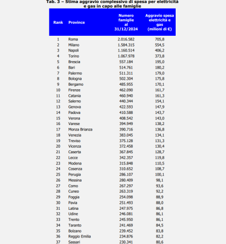 Secondo le stime, le famiglie calabresi potrebbero trovarsi a sostenere un aumento medio di 57,2 euro per luce e gas. Secondo la Cgia, l’impatto maggiore si registra in Cosenza, dove l’aggravio stimato raggiunge 108,7 euro. Alle spalle della città dei bruzi Reggio Calabria con 78,4 euro in più e Catanzaro con 53,1 euro. Incrementi più contenuti, invece, nelle province di Crotone (24,8 euro) e Vibo Valentia, che con 23,1 euro risulta la meno colpita.