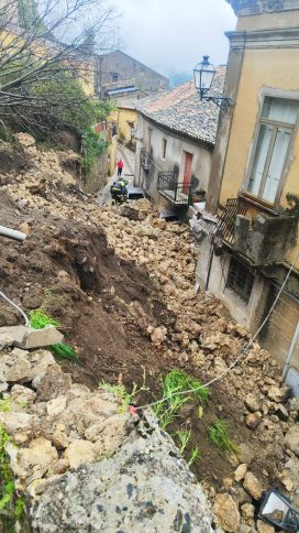 Grossa frana investe il centro abitato di Stilo: vigili del fuoco in azione – FOTO E VIDEO