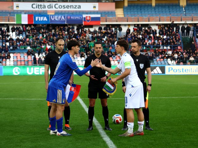 Serve un ultimo sforzo per festeggiare una qualificazione che lo scorso anno l’Italia proprio a Catanzaro non riuscì a ottenere sebbene avesse chiuso la fase Elite senza sconfitte (un successo con la Francia e due pareggi contro Spagna e Lettonia): lo stesso Bollini, ma anche i giocatori, in questi giorni hanno ringraziato i tifosi e fatto diversi appelli al pubblico di Catanzaro, che anche martedì – come accaduto già nelle prime due partite – potrà accedere gratuitamente allo stadio, scaricando un biglietto sul sito ticketing.figc.it. Oggi, per la squadra, giornata di scarico, con un leggero allenamento che si è svolto in mattinata e riservato ai giocatori che ieri non sono scesi in campo contro la Slovacchia. È sceso in campo nella ripresa, e ha anche segnato il gol del 3-0, Federico Coletta, uno dei quattro giocatori che già lo scorso anno avevano fatto parte della spedizione azzurra in Calabria (gli altri sono Andrea Natali, Mattia Liberali ed Emanuele Sala, quest’ultimo squalificato martedì contro i turchi dopo l’espulsione di ieri). Il centrocampista romano del Benfica, proprio dopo il rosso a Sala, ha anche ereditato dal centrocampista del Milan la fascia di capitano, trovando la rete con un movimento da centravanti. «Venire qui ogni volta, con questa maglia, con questa squadra, con questo staff e con questo pubblico, è stupendo – ha ammesso Coletta –. Rappresentare la Nazionale, il tricolore, è un’emozione incredibile, e io cerco di fare sempre il meglio per aiutare la squadra. Quella contro la Slovacchia è stata una vittoria meritata, ora manca un’ultima partita e speriamo di vincere anche questa». L’ingresso per la partita tra Italia e Turchia (martedì 31 alle 15) sarà gratuito, dietro presentazione di un titolo di accesso scaricabile sul portale ticketing.figc.it.