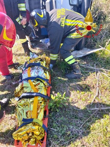 VIBO VALENTIA Nel pomeriggio odierno, intorno alle ore 15, i Vigili del Fuoco del Comando di Vibo Valentia, distaccamento di Serra San Bruno, sono intervenuti nel comune di San Nicola da Crissa, lungo l’ex SS 110, a seguito di un incidente stradale autonomo che ha coinvolto un motocarro Piaggio con a bordo due persone. Per cause in corso di accertamento, il conducente del mezzo ha perso il controllo del veicolo, che è uscito fuori strada finendo in una scarpata e adagiandosi su un fianco. I Vigili del Fuoco, prontamente giunti sul posto, hanno provveduto all’estrazione del passeggero rimasto all’interno dell’abitacolo. Dopo essere stato stabilizzato e immobilizzato su barella, il ferito è stato affidato ai sanitari intervenuti, che ne hanno disposto il trasferimento in eliambulanza.