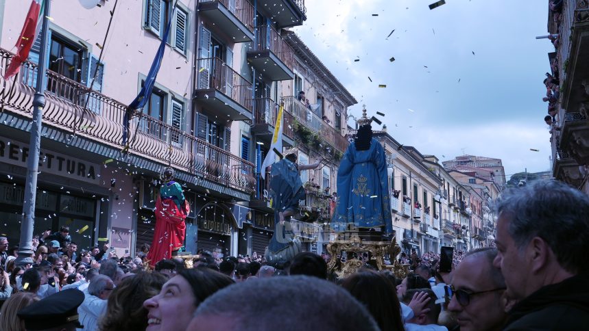 I portantini mimano in tal modo lo stupore e la commozione della Madonna. La drammaticità dell’evento, in molte comunità, è affidata alla corsa delle statue, al procedere veloce dei portantini, osservati in un silenzio che denota stupore, ansia, smarrimento. Anche quest’anno ho percepito questa preoccupazione a Vibo Valentia e ad Arena. Gli attimi precedenti l’incontro – a mezzogiorno o subito dopo, in un luogo centrale o emblematico del paese – sono carichi di tensione ed emozione. Nell’«ora cruciale del mezzogiorno» si verifica una sorta di «sospensione del tempo».