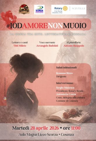COSENZA #Iodamorenonmuoio: è il titolo del recital teatrale tratto dal libro del giornalista e scrittore Arcangelo Badolati edito dalla Pellegrini di Cosenza (i diritti sono interamente devoluti in beneficenza) con la prefazione di Matilde Lanzino, madre della studentessa rendese stuprata e uccisa nel luglio del 1988. Il recital sarà messo in scena martedì 28 aprile, alle 11, nell’auditorium del Liceo “Scorza” alla presenza degli studenti e delle studentesse dell’istituto cosentino. L’iniziativa è promossa dal Rotary di Rende, presieduto dall’imprenditore Sergio Mazzuca, fondatore e titolare della gioielleria “Scintille”, con il contributo di Antonietta Cozza delegata alla Cultura del Comune di Cosenza e della dirigente scolastica Rosanna Rizzo.