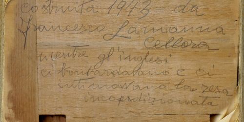 L’incisione rinvenuta durante il restauro della chiesa di Santa Maria delle Grazie. Nel messaggio il riferimento al bombardamento della Seconda guerr…