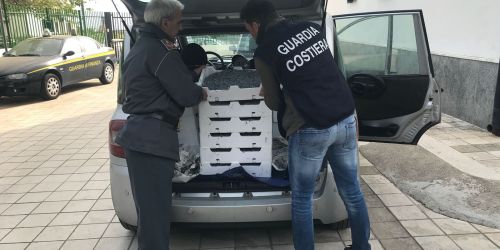 Guardia costiera e Guardia di finanza hanno scoperto il prodotto ittico trasportato illegalmente su un monovolume. Multa da 25mila euro per il conduc…
