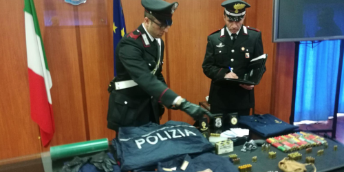 Armi, divise della polizia e un ordigno in uno scantinato a Cosenza