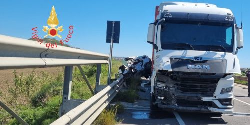 Tragedia sulla SS106, scontro tra un mezzo pesante e due auto: un morto e quattro feriti
