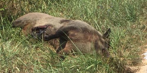Lamezia, rifiuti (e la carcassa di un cinghiale) su via del Progresso