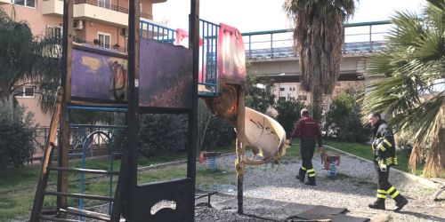 REGGIO CALABRIA Divampato un incendio in un parco giochi del quartiere Spirito Santo. Uno scivolo con torre da gioco a disposizione dei bambini…