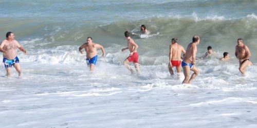 CROTONE Quaranta temerari hanno sfidato il clima rigido e il vento sferzante e non hanno voluto fare mancare, a mezzogiorno in punto, il saluto al 20…