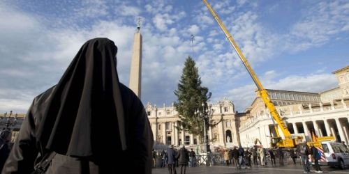 ROMA È arrivato dalla Calabria in Vaticano l’albero di Natale del Papa, già innalzato in piazza San Pietro, al centro del colonnato del Bernini di fr…