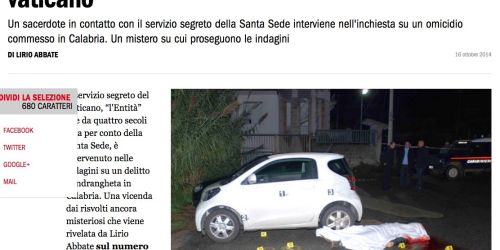TAURIANOVA Ci potrebbe essere l’ombra degli 007 vaticani dietro l’omicidio del diciottenne Francesco Inzitari, figlio dell’ex consigliere provinciale…