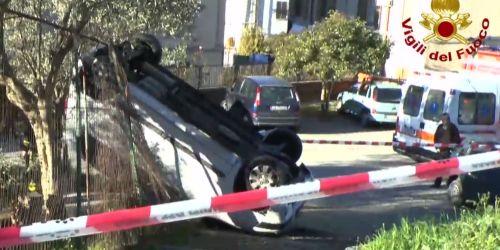 IL VIDEO | Auto capovolta dopo un incidente a Cosenza