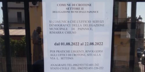 Crotone, delegazione comunale chiusa per ferie (dell’unico dipendente)
