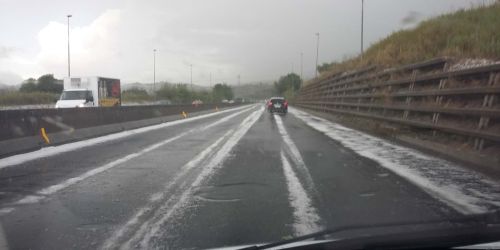 Forte grandinata, nella tarda mattinata di lunedì, tra Catanzaro e Lamezia Terme. Il maltempo ha provocato disagi alla circolazione, con code agli sv…