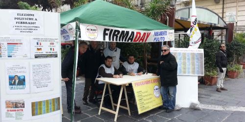 Piazza Camagna piena. Circa duecento persone accorse per l`appuntamento di Beppe Grillo a Reggio Calabria per il “Firma Day”, la raccolta di firme ut…