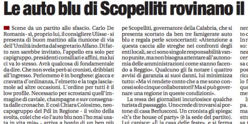 «Le auto di blu di Scopelliti rovinano il piano sobrietà». Il solito giornale comunista disfattista e nemico della Calabria – e forse anche di Reggio…