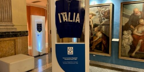 La mostra ripercorre la storia degli Azzurri dal Dopoguerra fino ai giorni nostri. A fare da sfondo le opere d’arte esposte alla Pinacoteca Civica