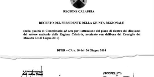 Il ministero della Salute annulla gli atti firmati da Scopelliti