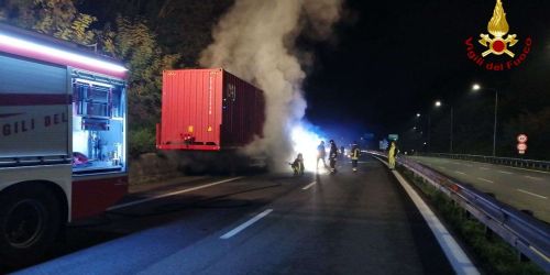 Pronto intervento dei Vigili del Fuoco in prossimità dello svincolo di Sant’Onofrio per l’incendio ad un mezzo che trasportava un container con compo…