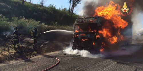 Falerna, camion prende fuoco sull’autostrada