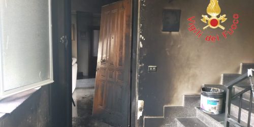 Evacuati anche gli occupanti dei restanti appartamenti. Danneggiato il portoncino di ingresso e il quadro elettrico